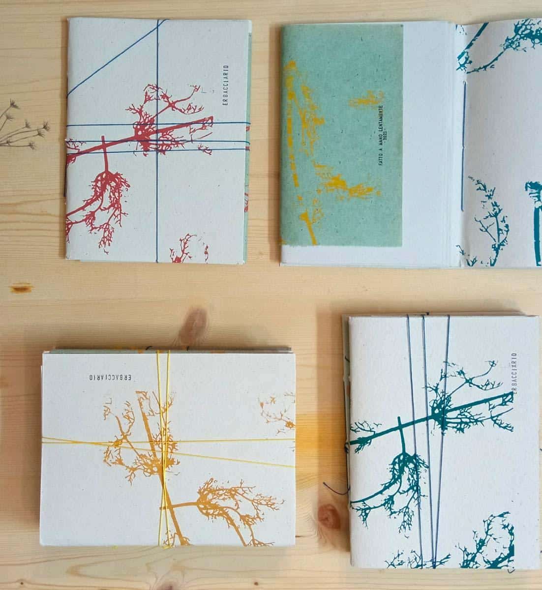 Diese Notizbücher aus dickem, rauem Fioretto-Papier, das von den Saatgutherstellern für die Herstellung von „Cuoppi“ verwendet wird, Papiertüten, in denen geröstete Samen, Trockenfrüchte und Hülsenfrüchte verkauft werden.