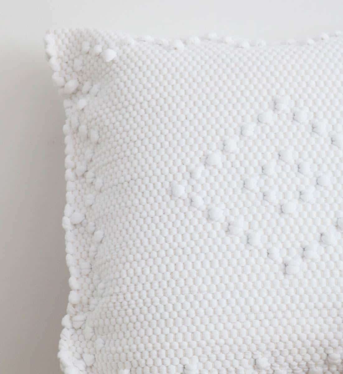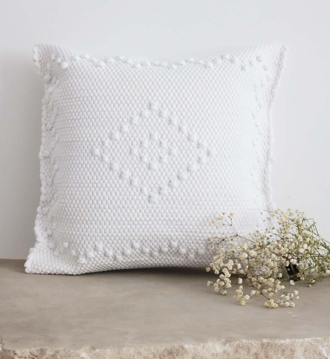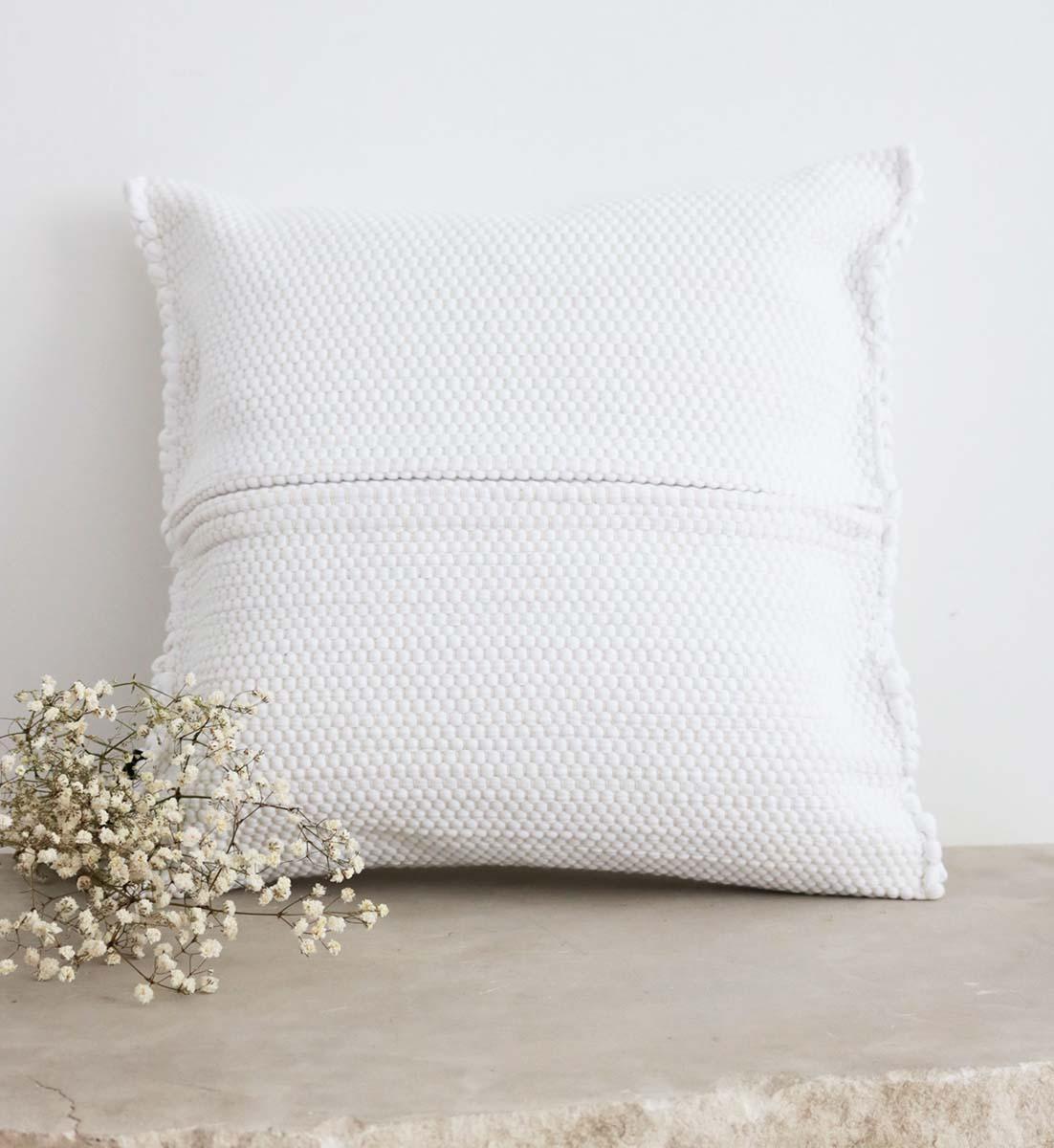 Die Puxados-Kissen, die in zwei Designvarianten erhältlich sind, werden vollständig auf traditionellen Webstühlen handgefertigt und können daher in ihren Abmessungen um einige Millimeter variieren.