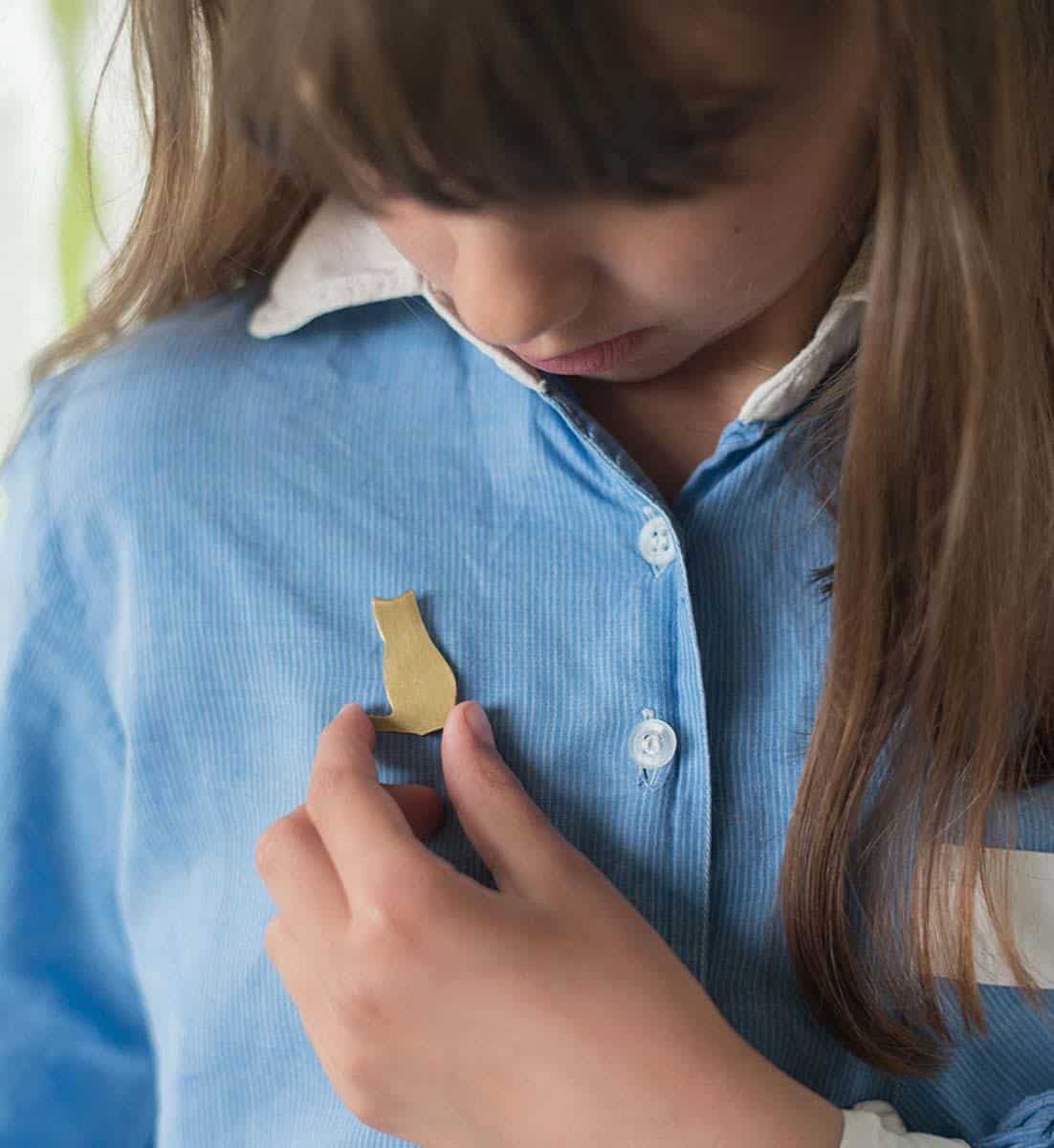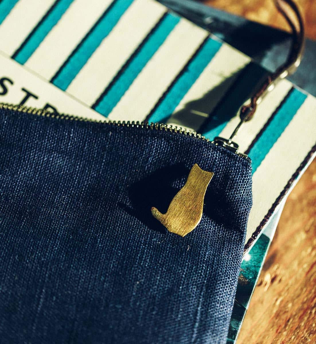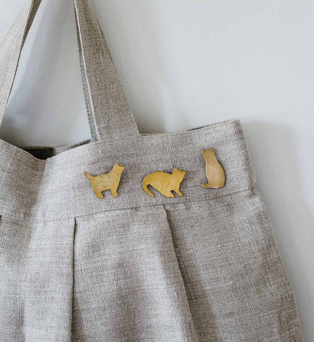 Eine supersüsse Katzensilhouette aus handgehämmertem Messing. Auf der Rückseite ist eine Anstecknadel angebracht.