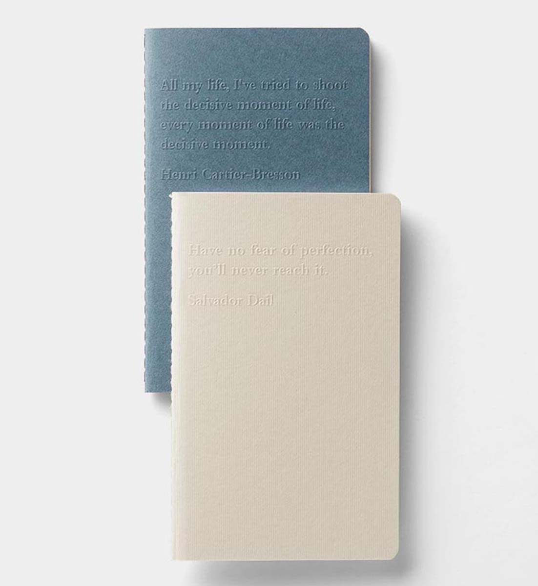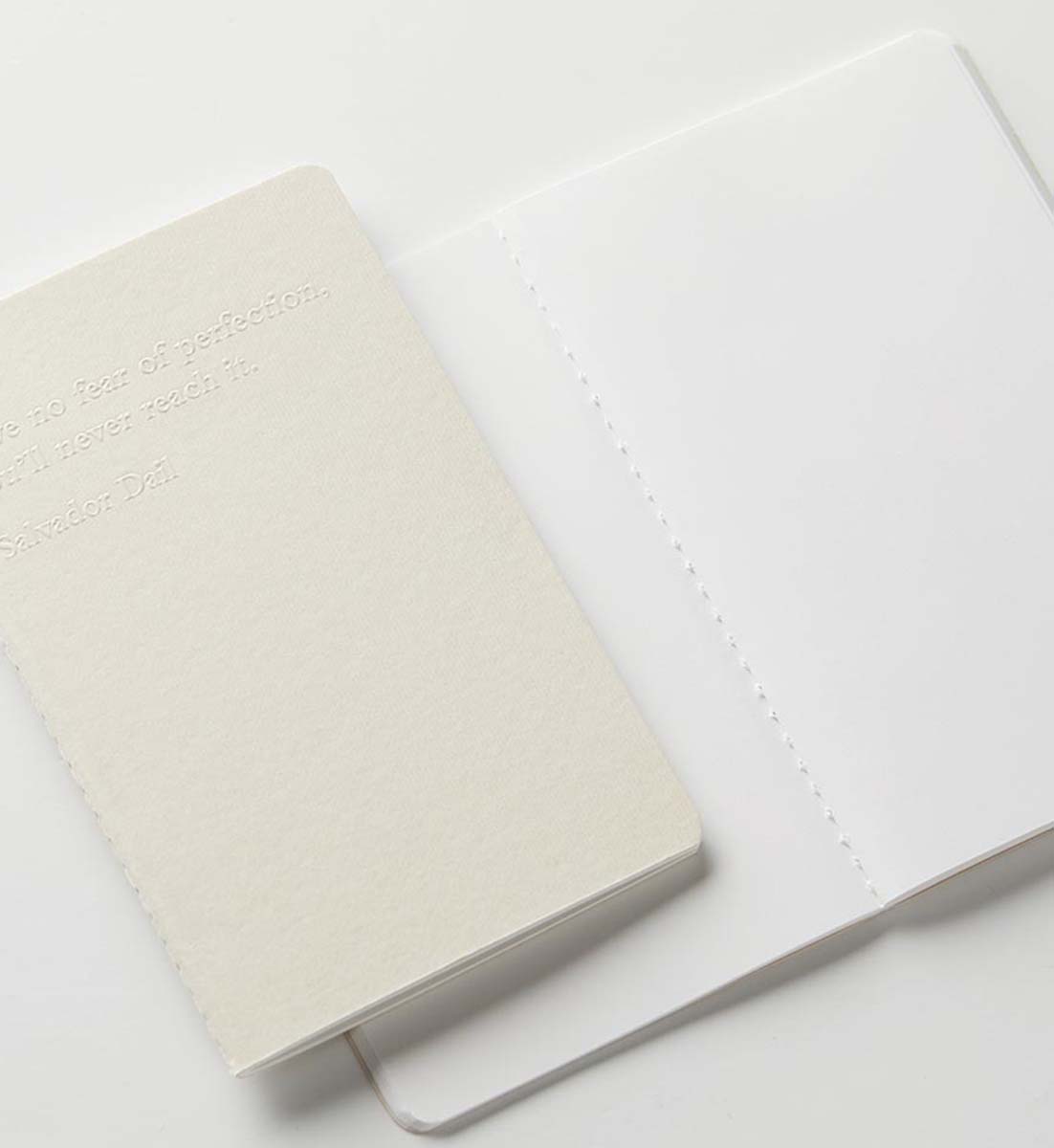 Set aus zwei Notizheften: 1x cremefarbiges liniertes Papier, 1x weisses blanko Papier