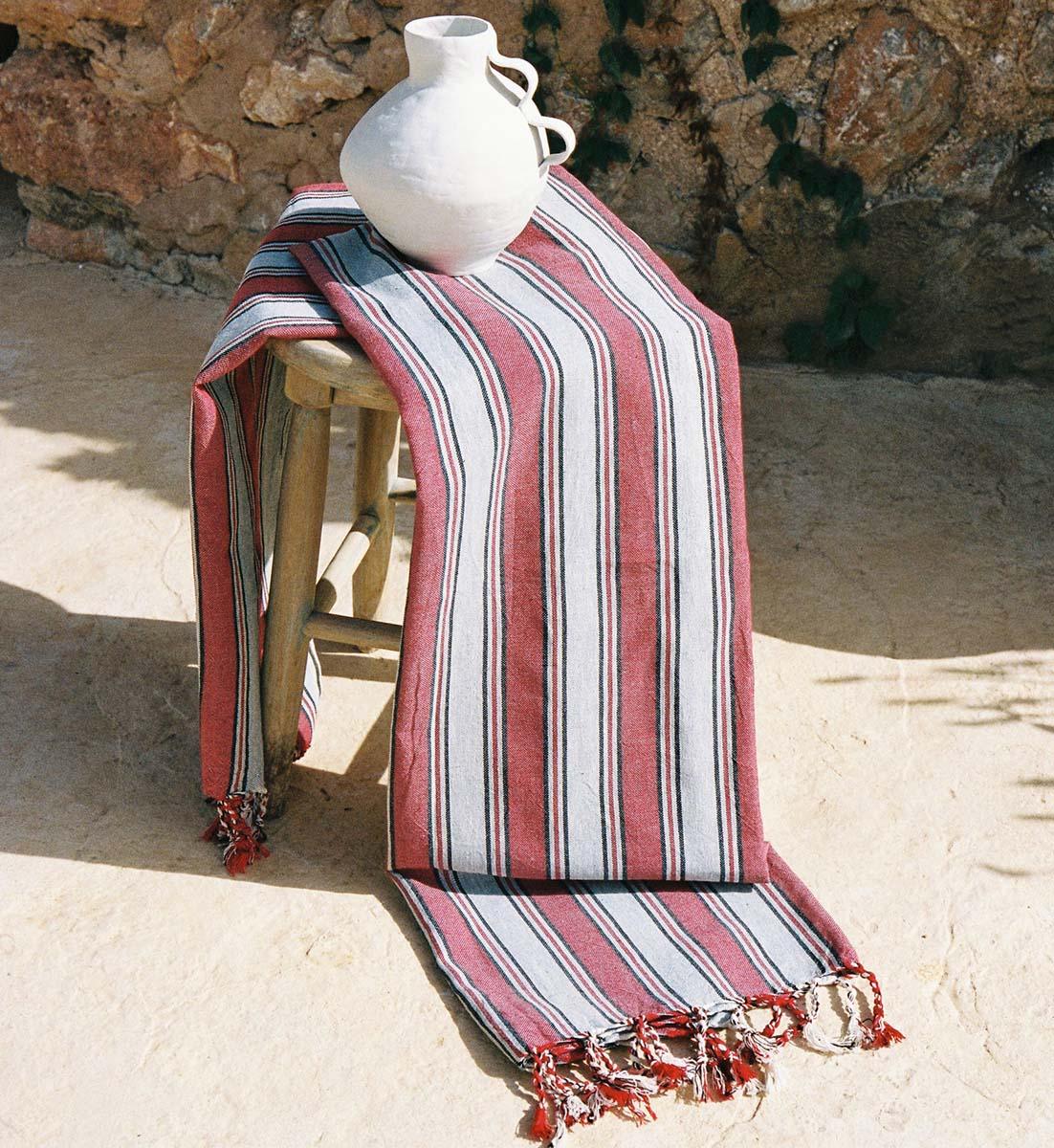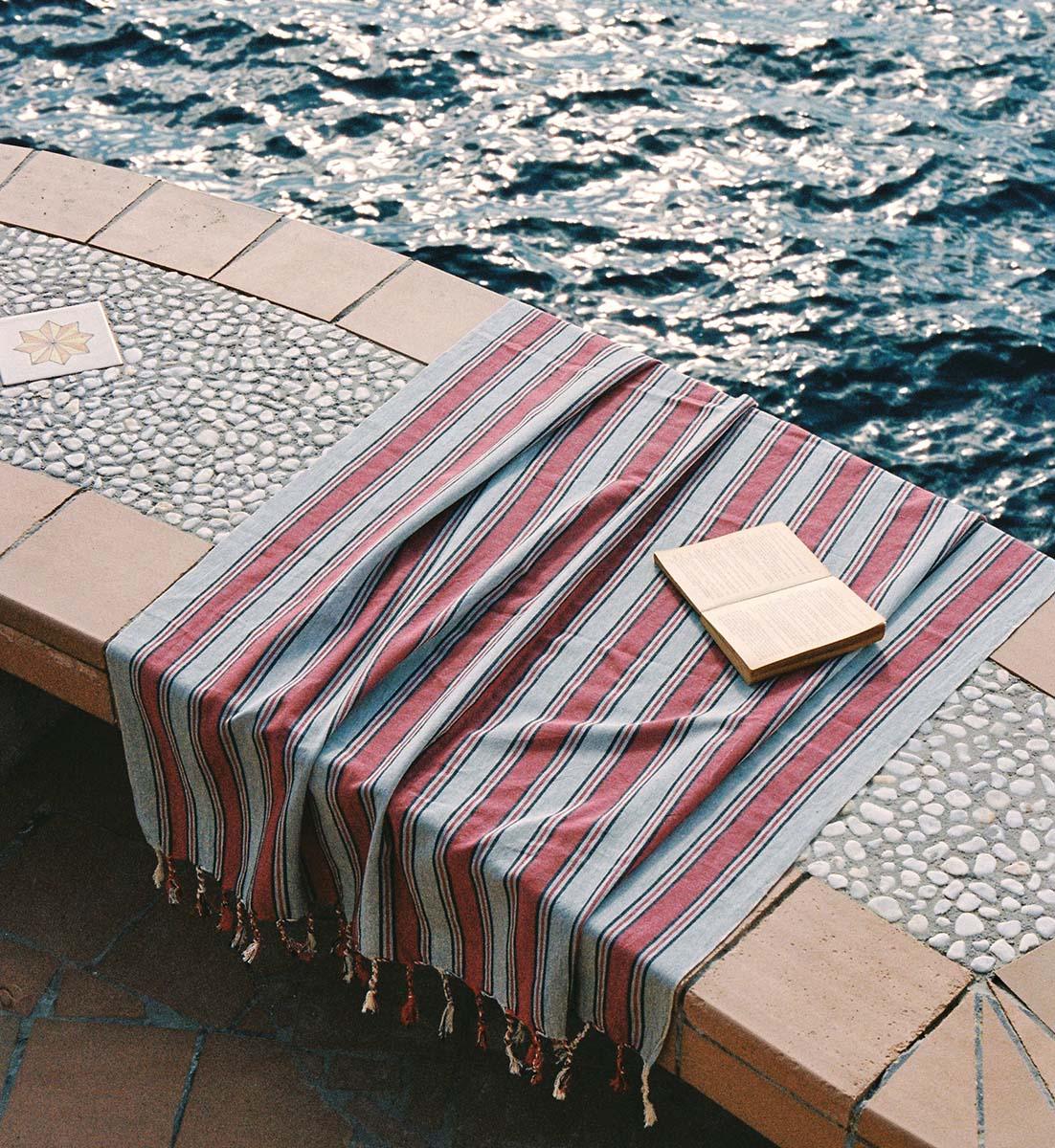 Der Strandtuch Terra spiegelt die minimalen Linien der modernen Zeit und die erdige Textur des Mittelmeers wider.