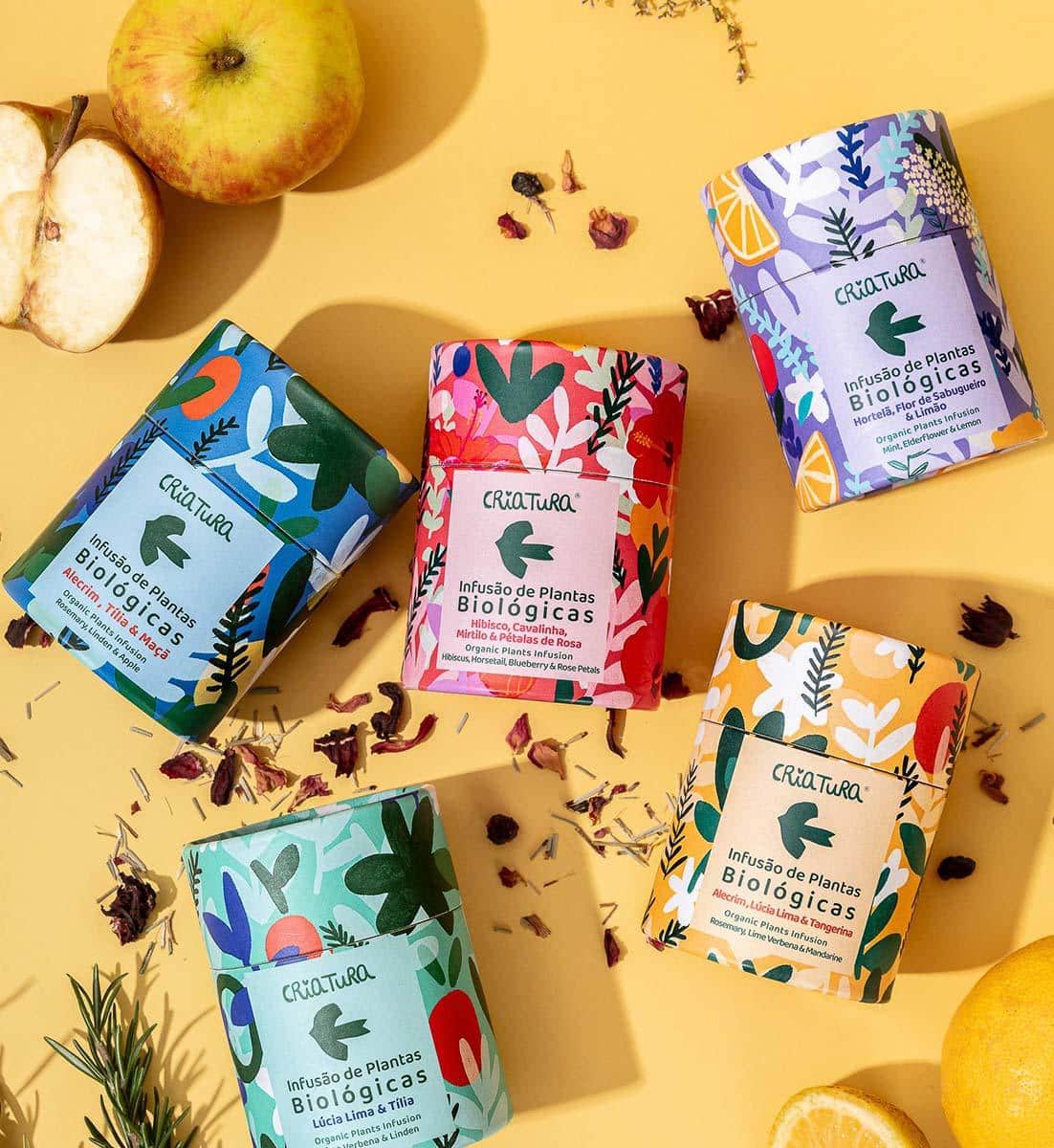 Teemischungen aus Bio-Pflanzen und -Obst von kleinen portugiesischen Bauern, für die es schwierig ist, ihre Produkte auf grossen Märkten zu verkaufen, da sie nicht der Norm (Grösse, Form etc.) entsprechen.