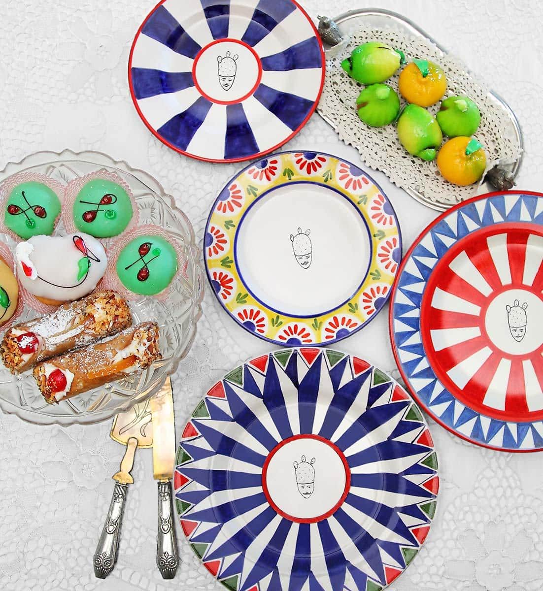 Diese bunten Teller sind ein Symbol der sizilianischen Karren. Ideal zum Dekorieren des Tisches oder zum Aufhängen an der Wand. Jeder unserer Teller ist ein kleines Kunstwerk, das von geschickten und zarten Händen geschaffen wurde, die die Terrakotta-Figuren und -Designs mit dem Geschmack Siziliens bedrucken.