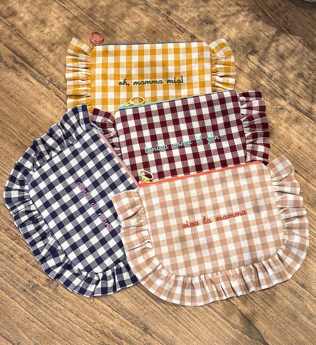 Unsere karierte Clutch – mit Liebe genäht, mit Humor getragen! Diese Clutch ist nicht nur ein Hingucker, sondern auch ein Herzensstück! Handgenäht, mit ganz viel Liebe und einer Prise Verrücktheit bringt sie mit ihrem fröhlichen Karo-Muster frischen Wind in jedes Outfit. Ob für den Wochenmarkt, den Mädelsabend oder einfach als Gute-Laune-Begleiter – dieses Täschchen macht, was es will: gute Laune!