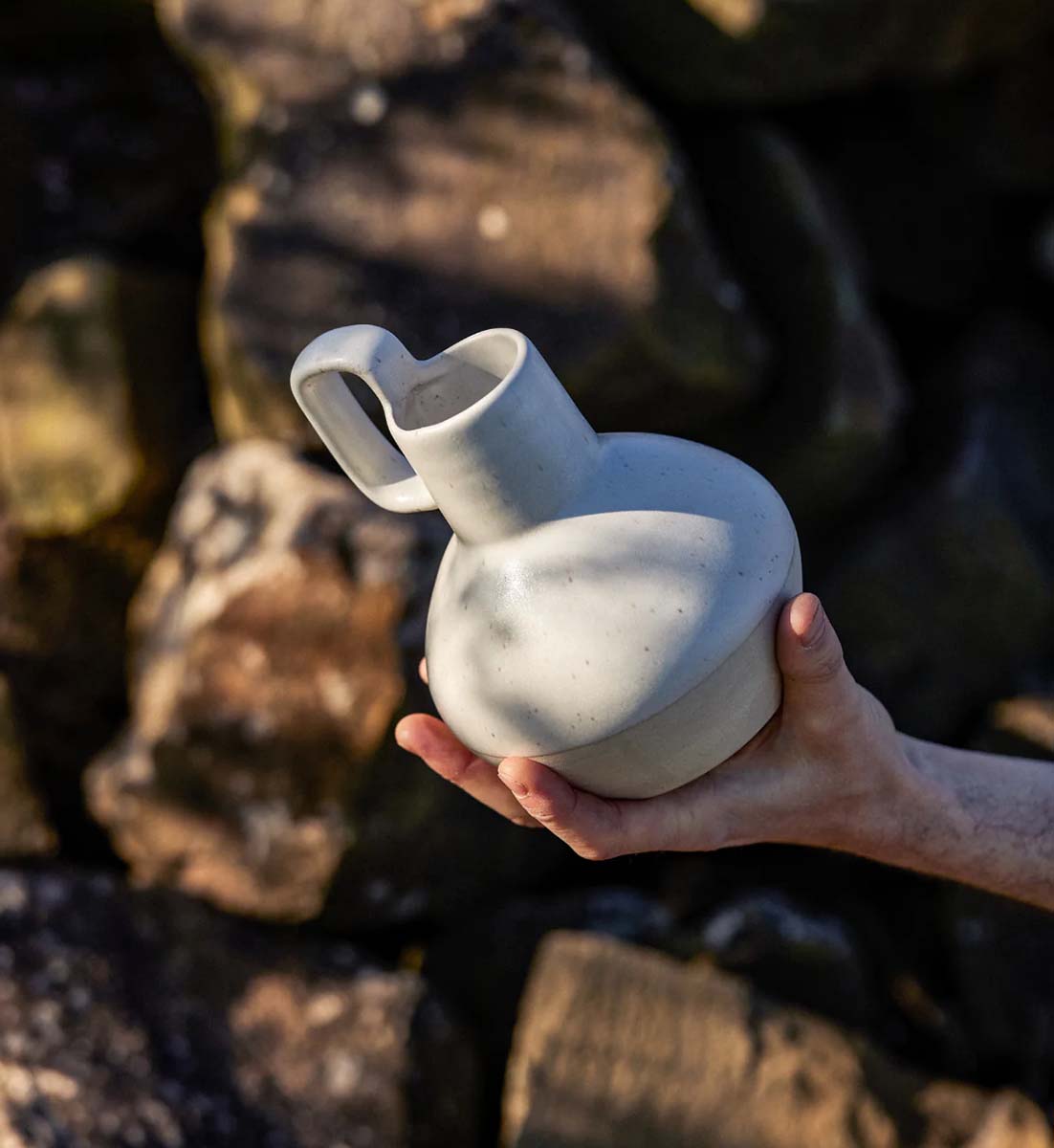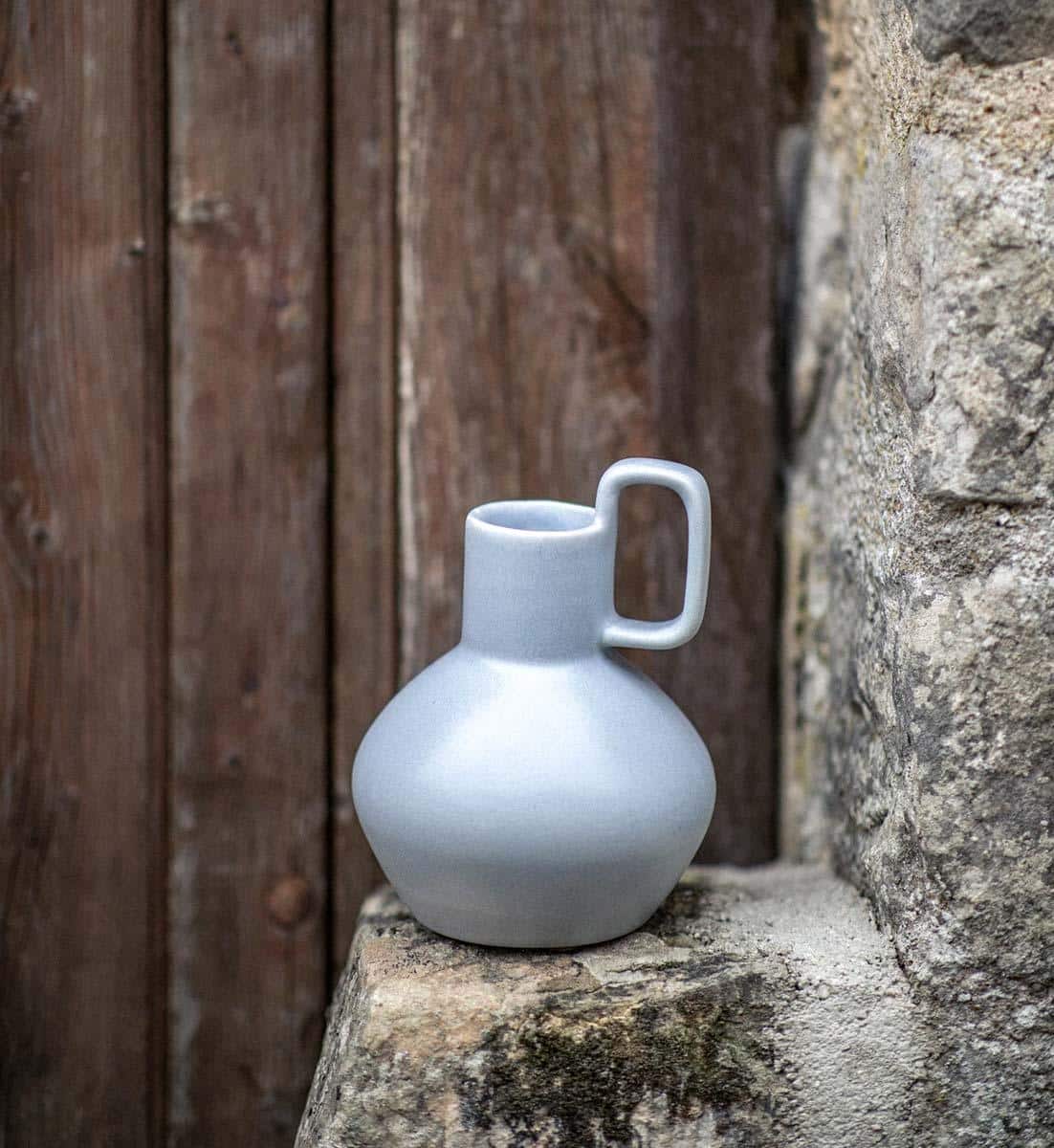 An eine alte Nachttischlampe eines Dichters: daran erinnert uns das Design dieser Vase mit Henkel.